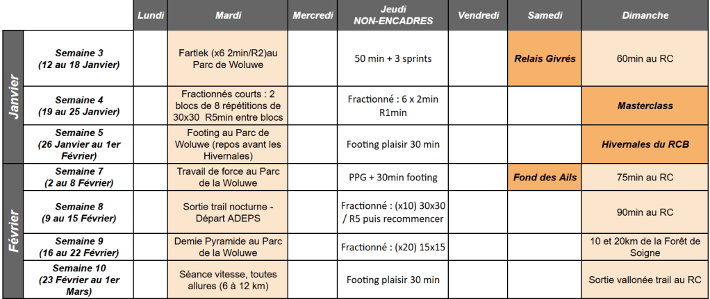 Les entraînements de la semaine sont pensés pour équilibrer progression et plaisir.